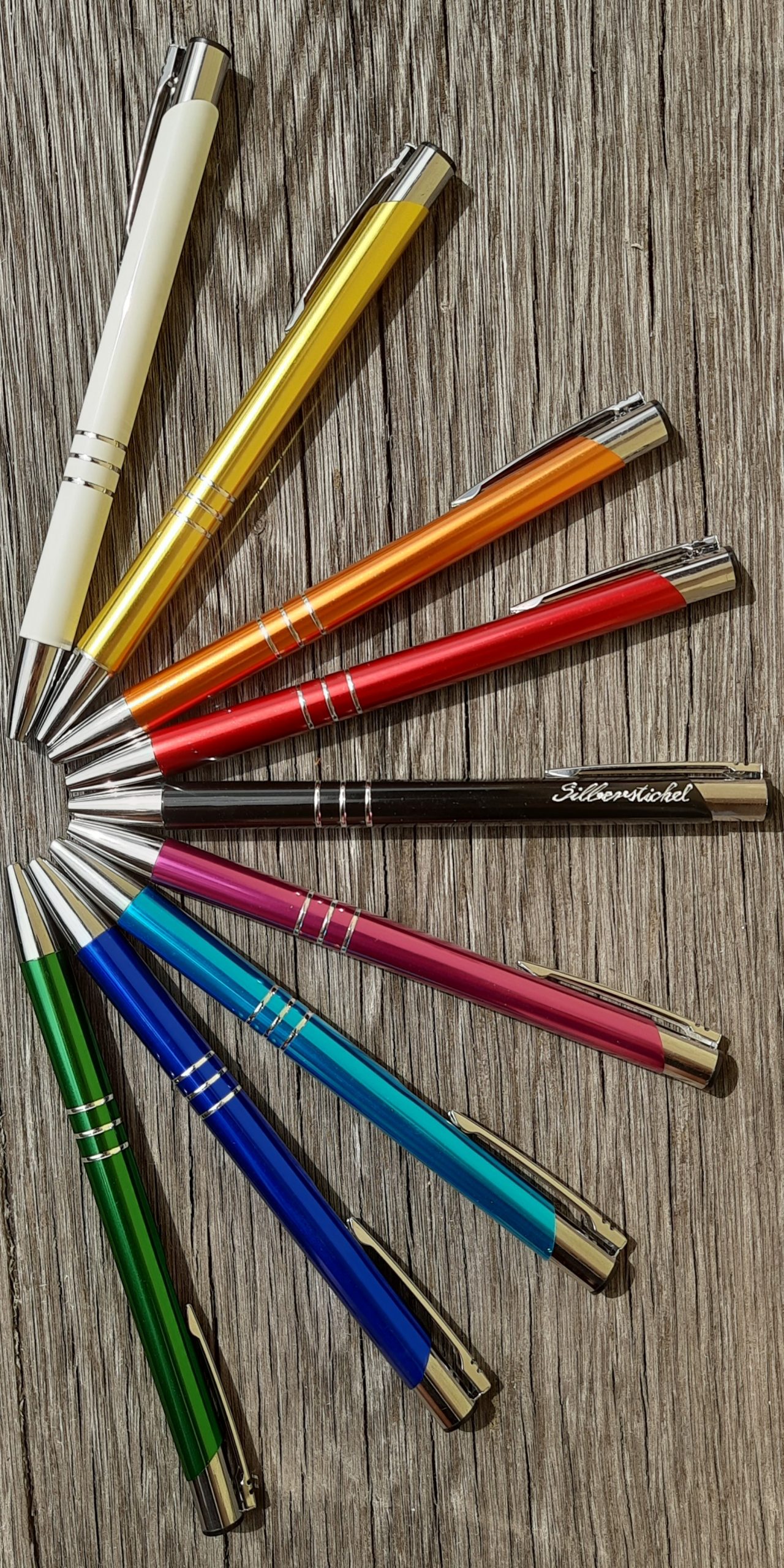 Elegante eloxierte Aluminiumkugelschreiber in verschiedenen Farben mit hochwertiger Handgravur. Perfekt personalisiert für jeden Anlass!